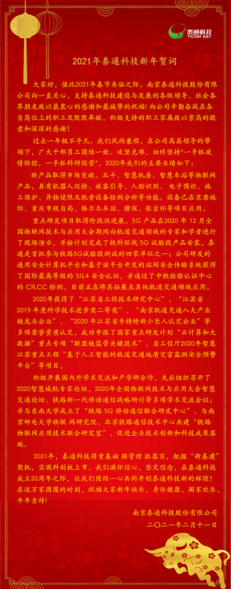 2021年泰通科技新年賀詞